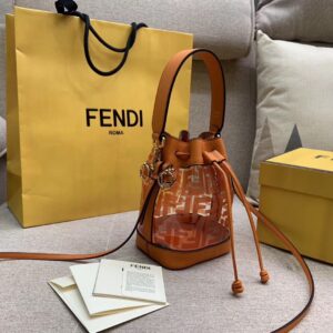 Fendi Orange Mon Tresor Mini Bucket Bag In Transparent PU