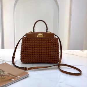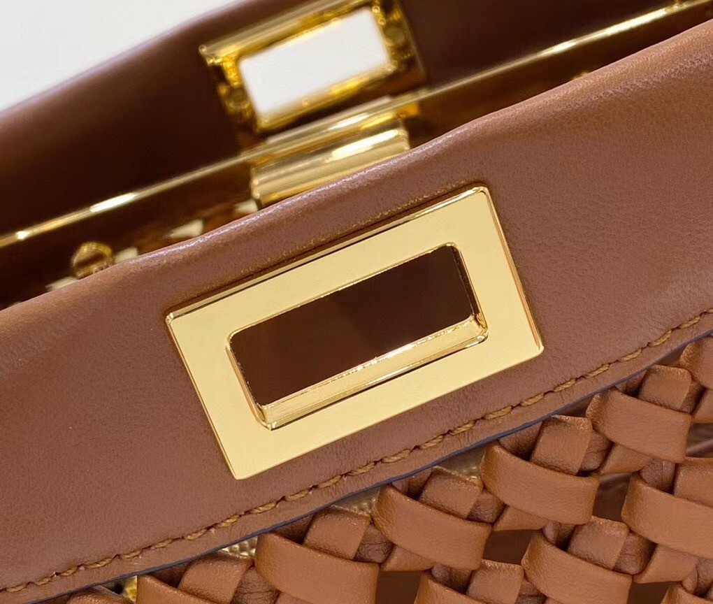Fendi Peekaboo Mini Bag In Brown Interlace Leather