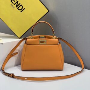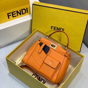 Fendi Peekaboo Mini Pocket Bag In Orange Calfskin