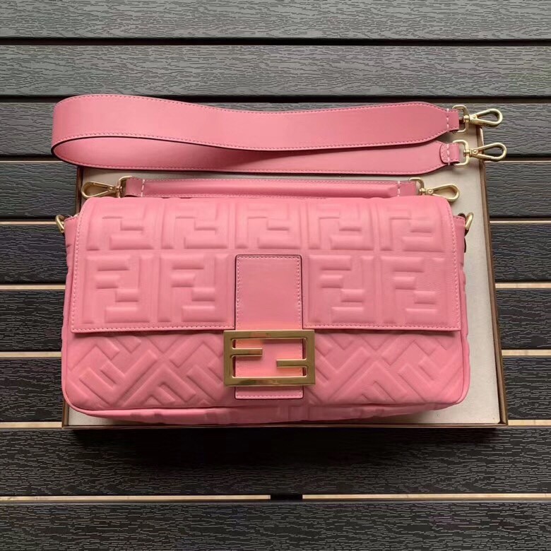 Fendi Pink FF Motif Large Baguette Bag