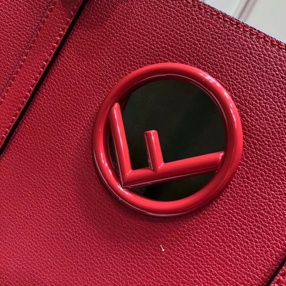 Fendi Red Leather Logo Shopper Bag