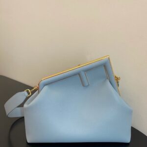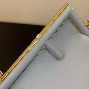 – Oversized metal F clasp bound with tone on tone nappa leather