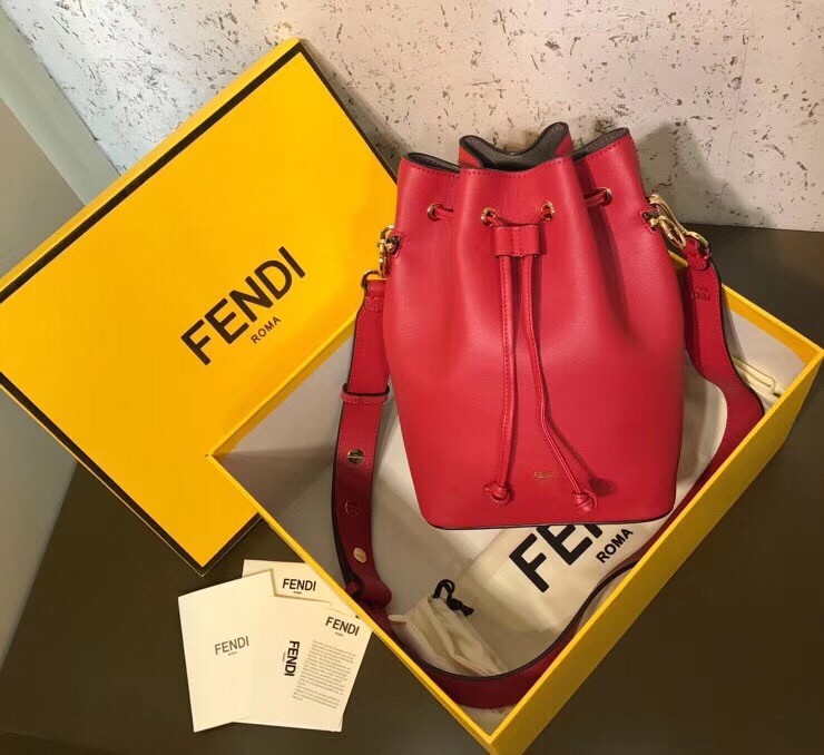 Fendi Small Mon Tresor Bucket Bag In Red Calfskin