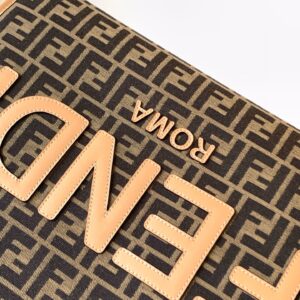 – FENDI ROMA lettering in light brown leather