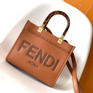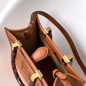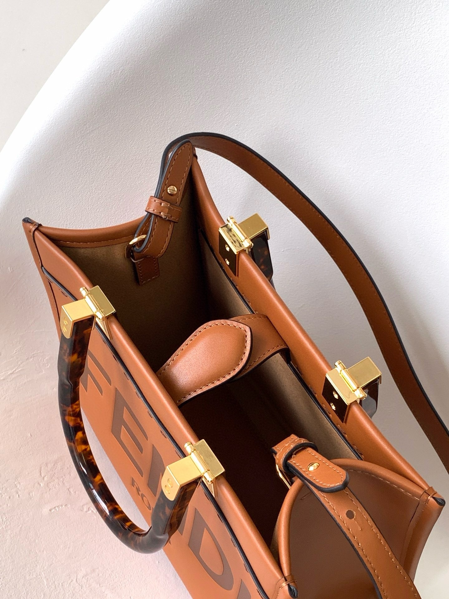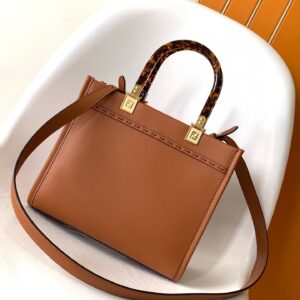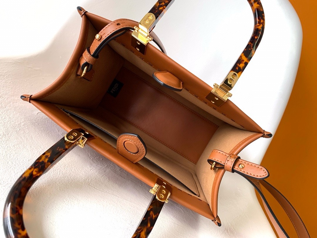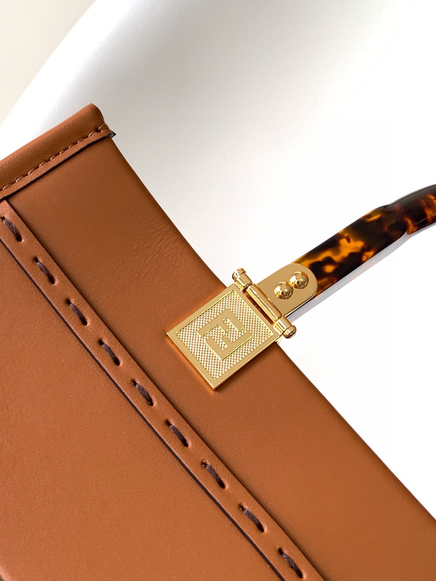 Fendi Sunshine Small Tote Bag In Brown Calfskin