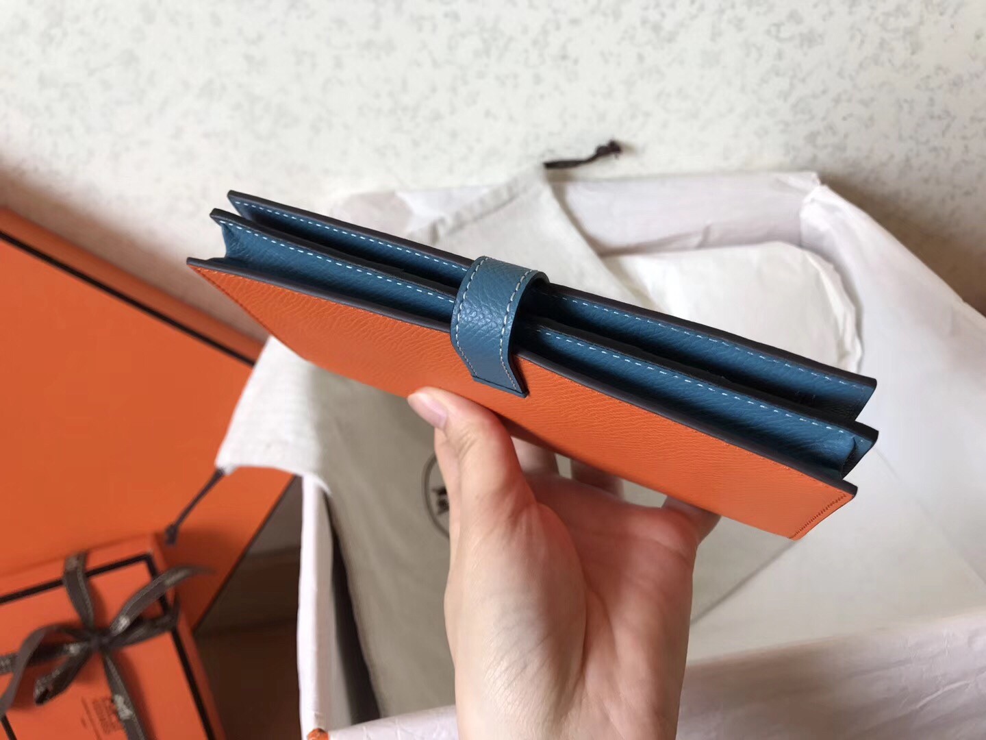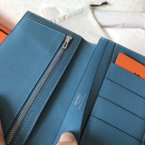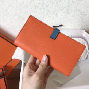 Hermes Bi-Color Epsom Bearn Wallet Orange/Blue Jean
