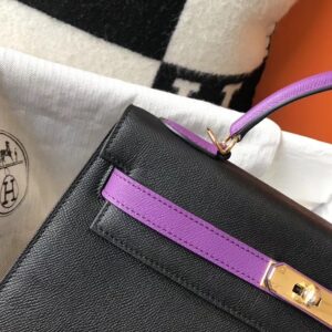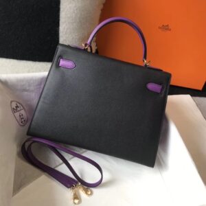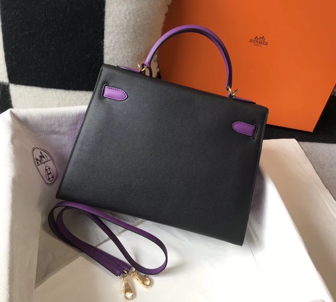 Hermes Bi-color Kelly 32cm Epsom Bag Black/Purple GHW