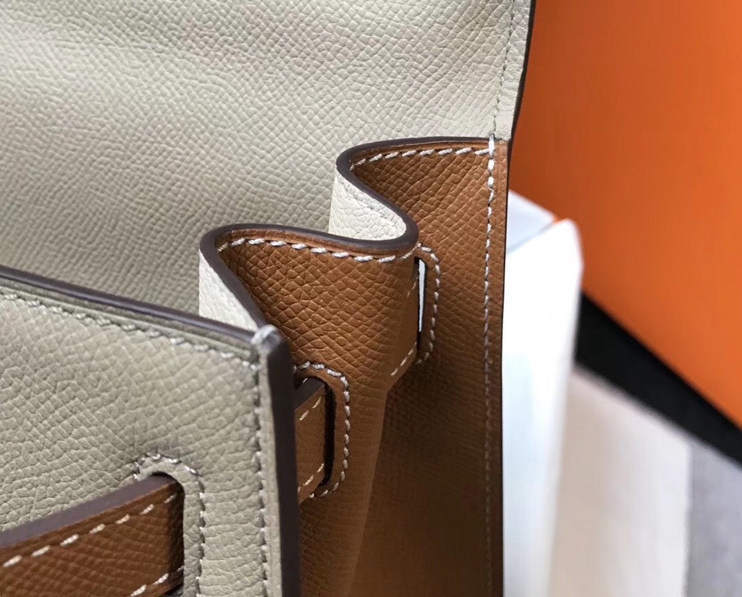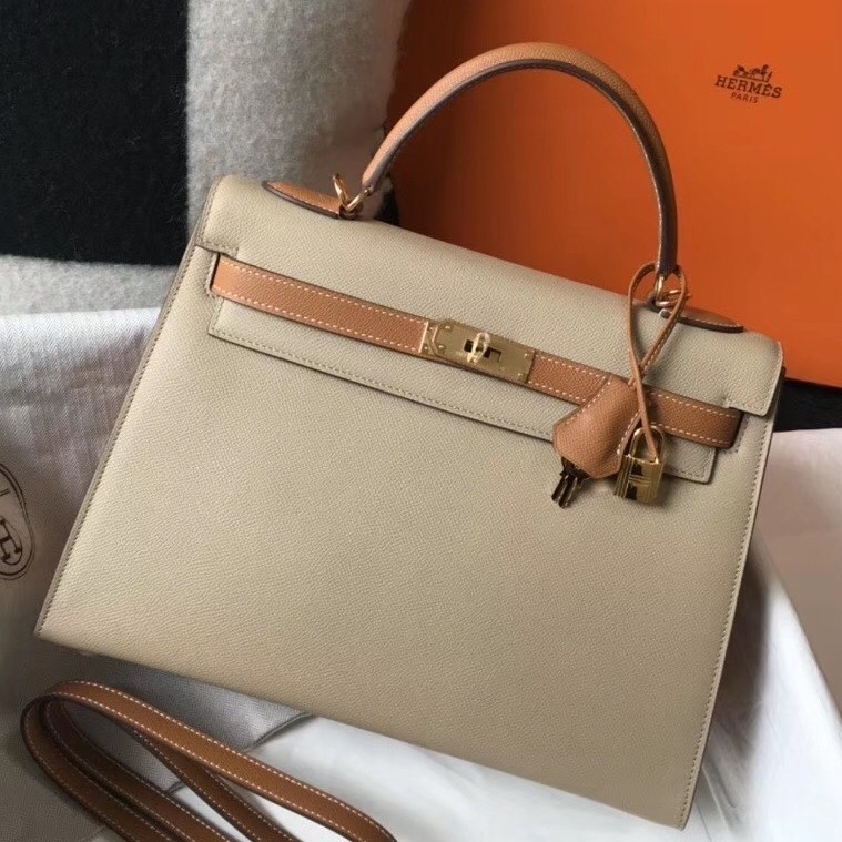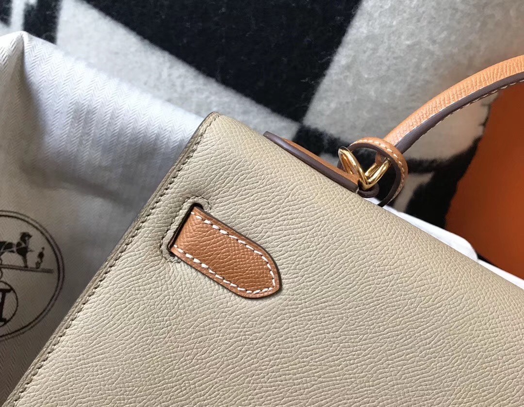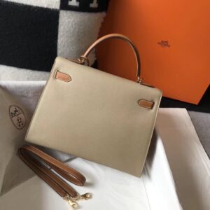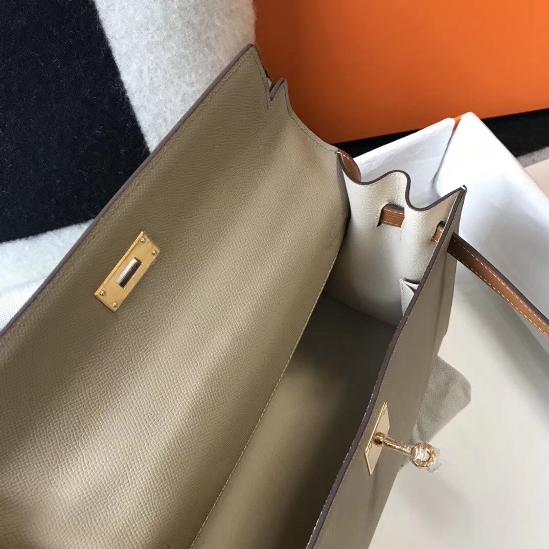 Hermes Bi-color Kelly 32cm Epsom Bag Tourterelle/Gold GHW