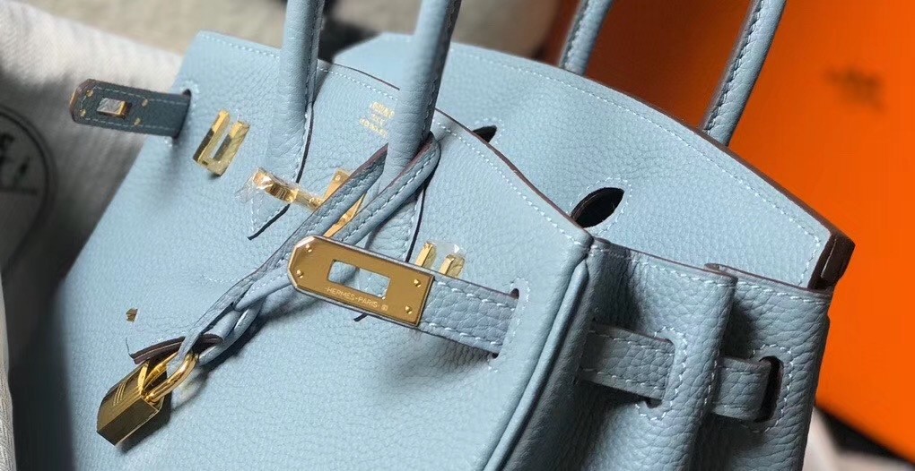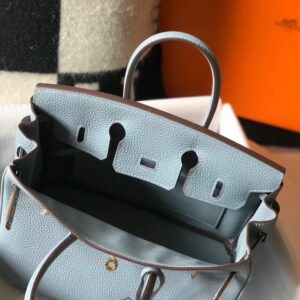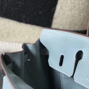 Hermes Birkin 25cm Bag In Blue Lin Clemence Leather