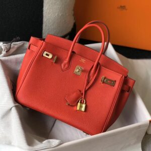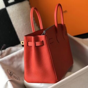 Hermes Birkin 25cm Bag In Red Clemence Leather