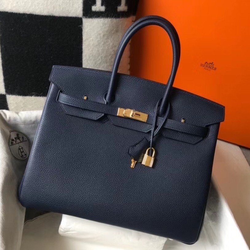 Hermes Birkin 35cm Bag In Navy Blue Clemence Leather