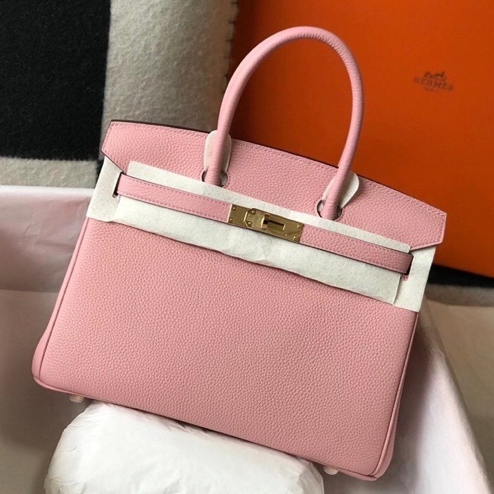 Hermes Birkin 35cm Bag In Pink Clemence Leather GHW