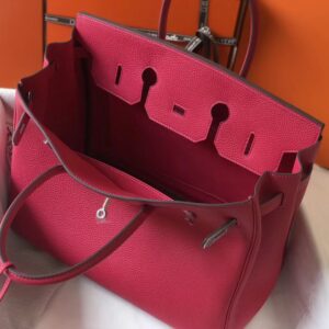 Hermes Birkin 35cm Bag In Rose Red Clemence Leather
