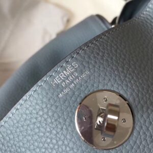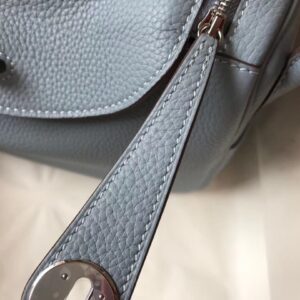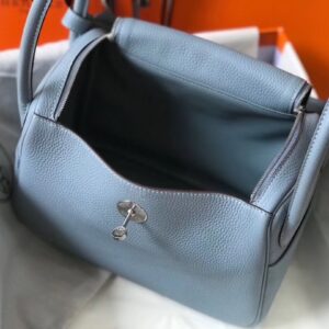 Hermes Blue Lin Clemence Lindy 30cm Bag with PHW