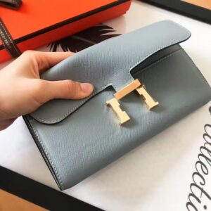Hermes Blue Lin Epsom Constance Long Wallet