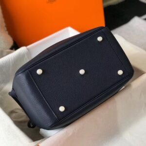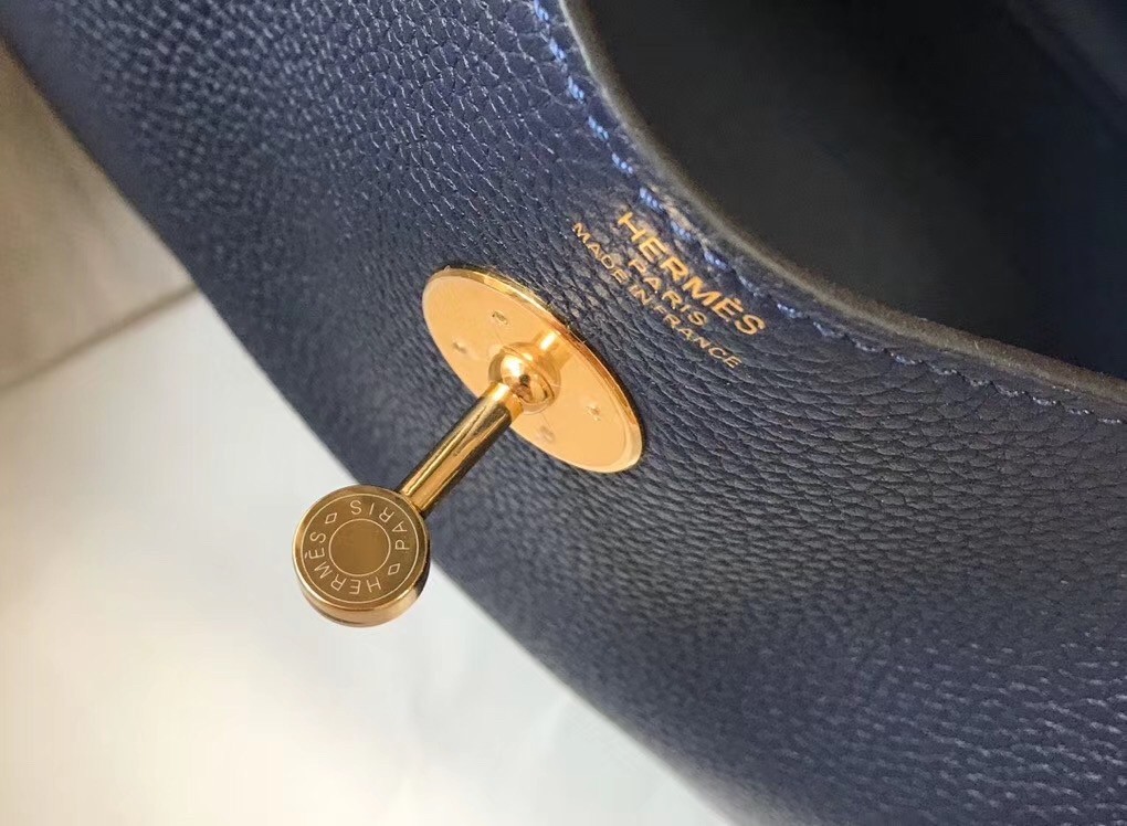 Hermes Dark Blue Clemence Lindy 30cm Bag with GHW