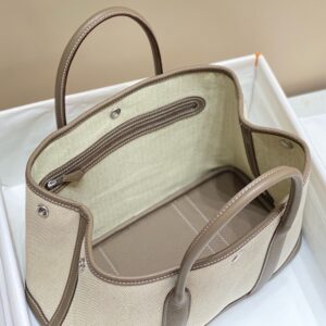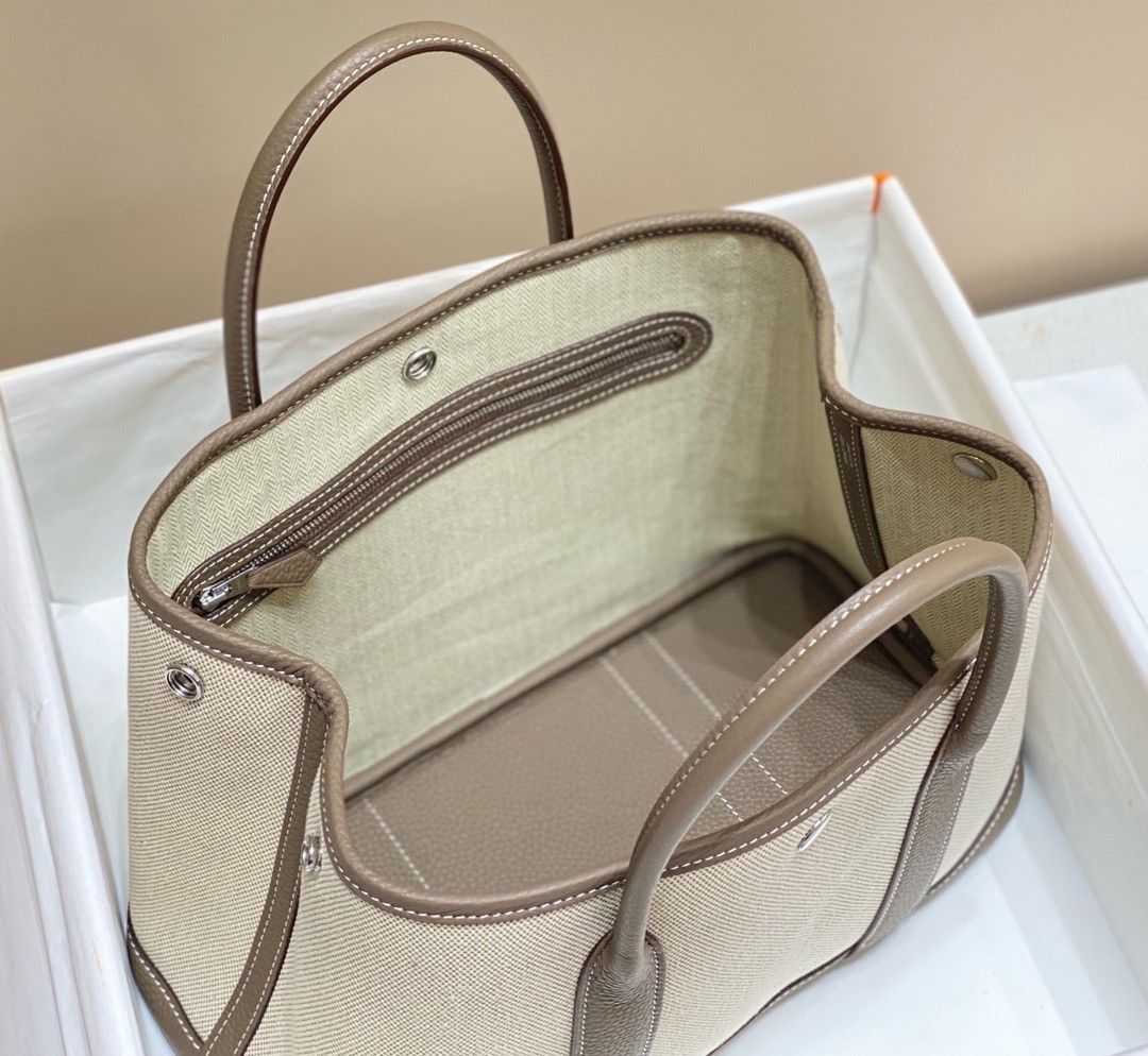Hermes Garden Party 30cm Bag in Toile and Taupe Leather