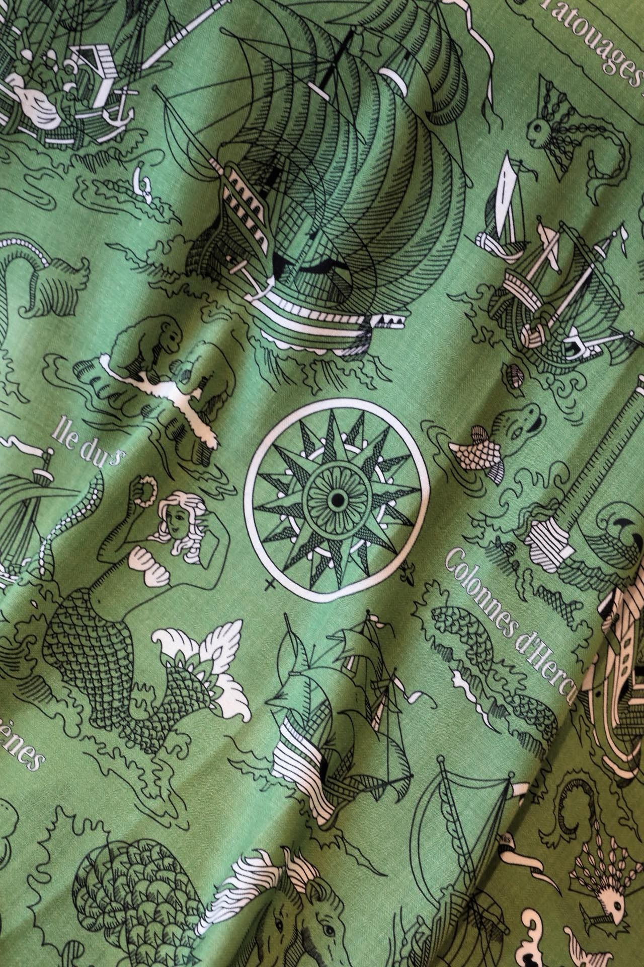 Hermes Green Tatouages Marins Bandana Shawl 140