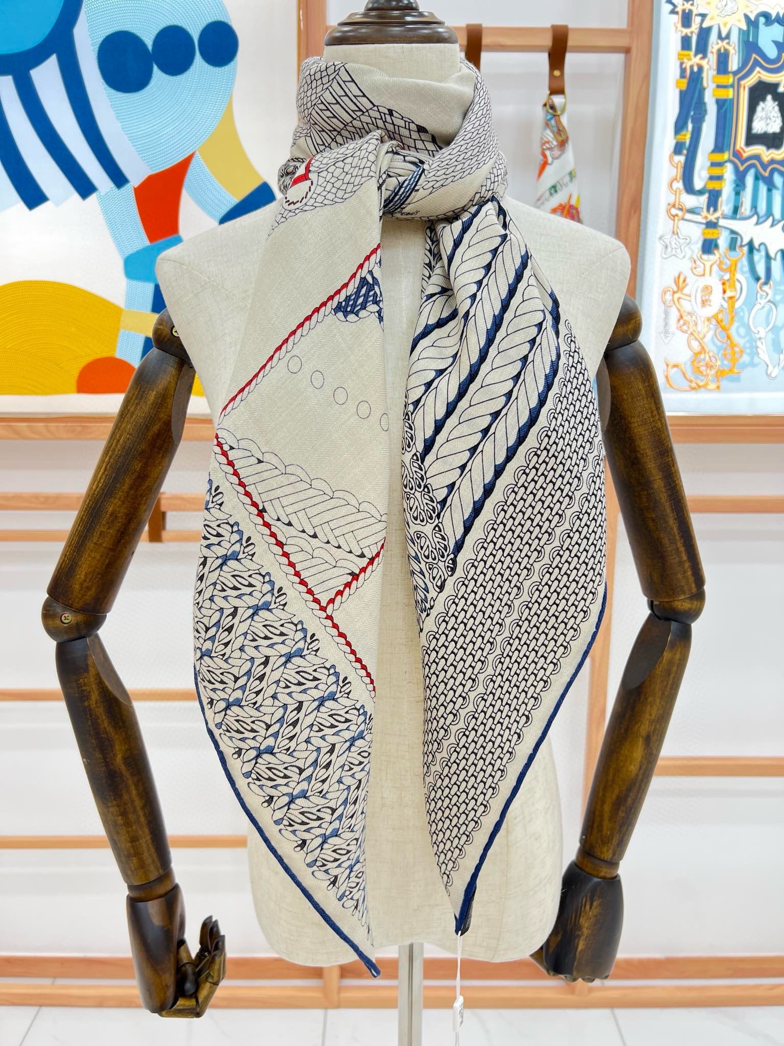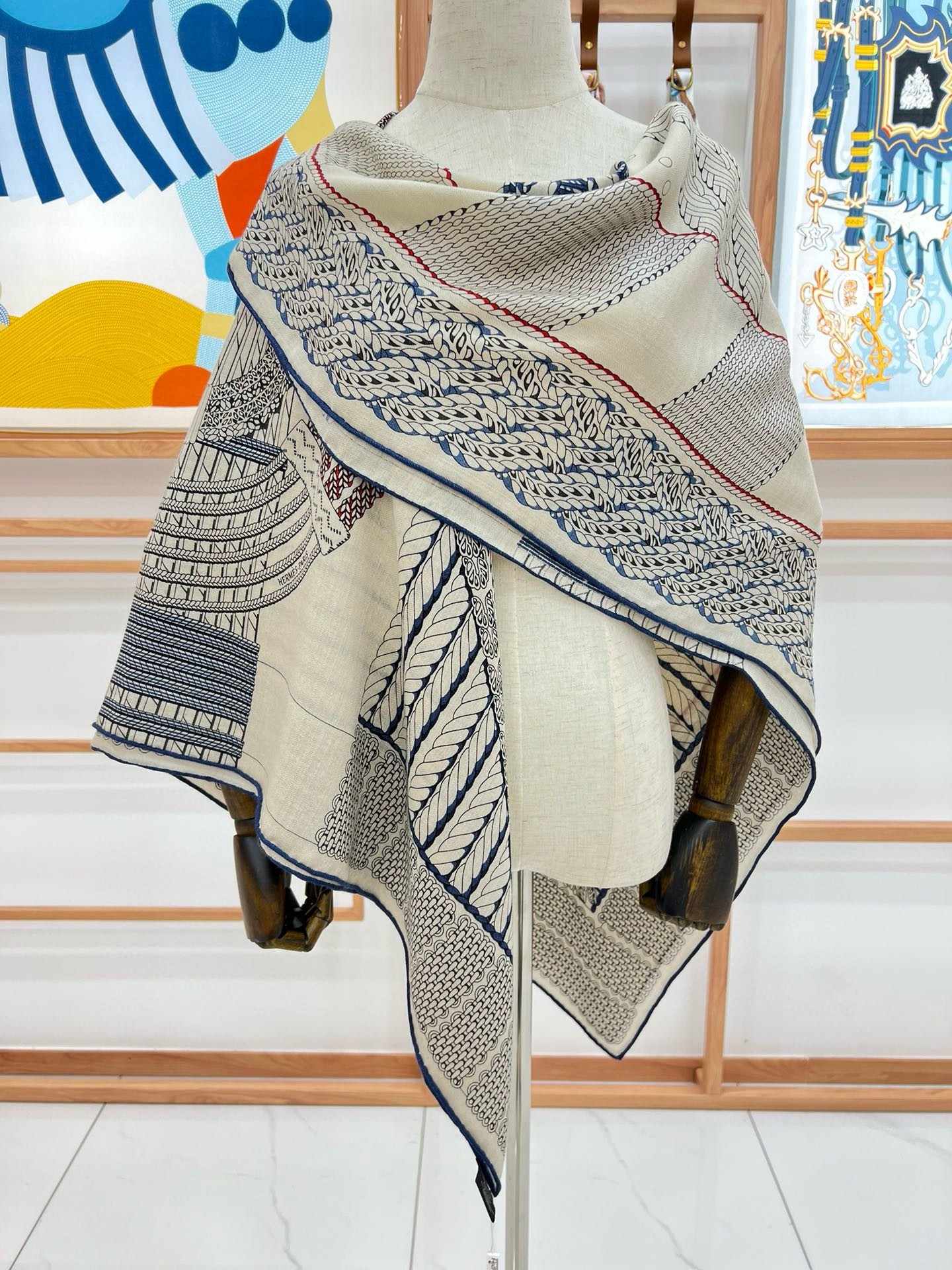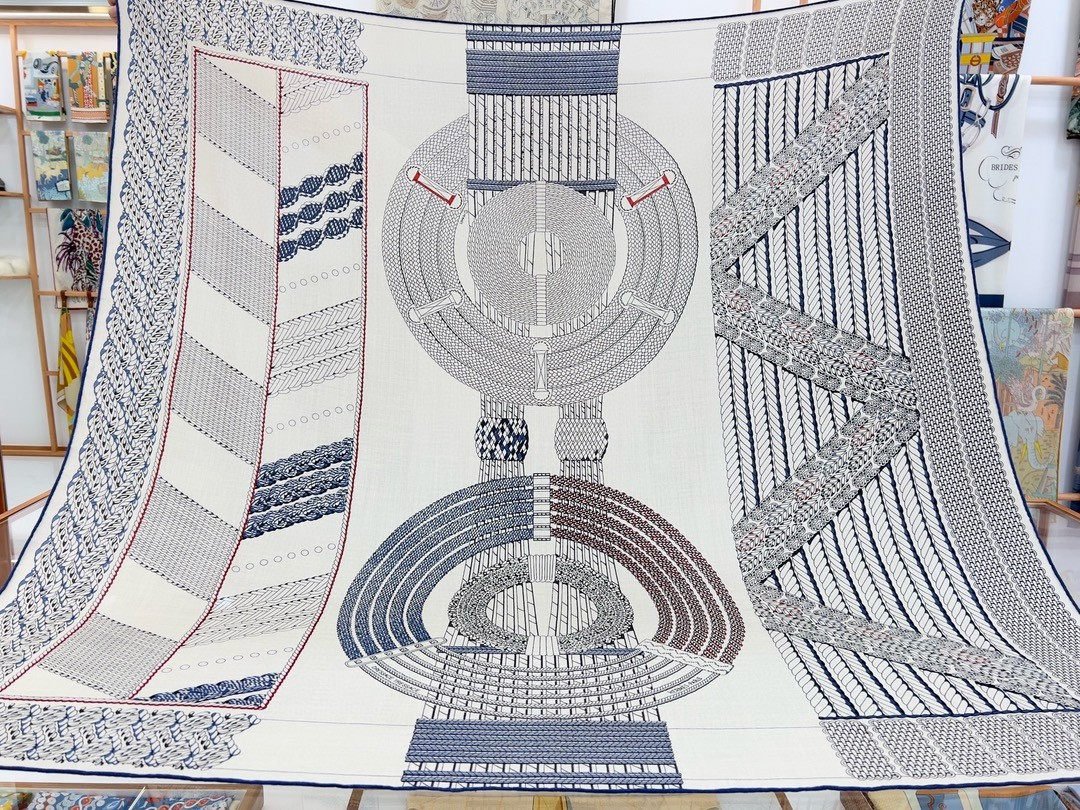 Hermes Grey Dressage Tressage Shawl 140