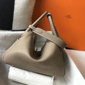 Hermes Gris Tourterelle Clemence Lindy 30cm Bag with GHW