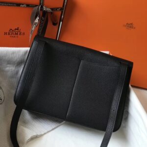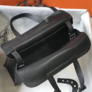 Hermes Halzan 31cm Bag In Black Clemence Leather