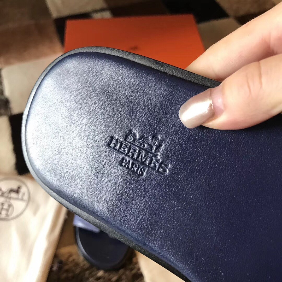 Hermes Izmir Sandals In Blue Matte Niloticus Crocodile