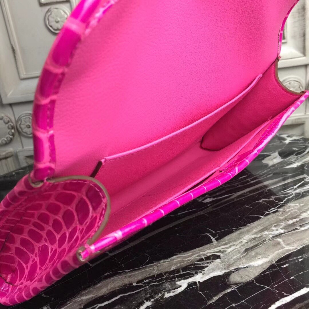 Hermes Jige Elan 29 Clutch In Rose Red Crocodile Leather