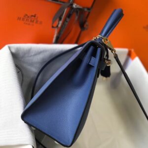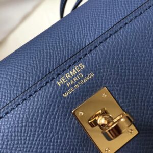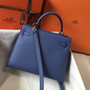 Hermes Kelly 25cm Sellier Bag In Agate Blue Epsom Leather