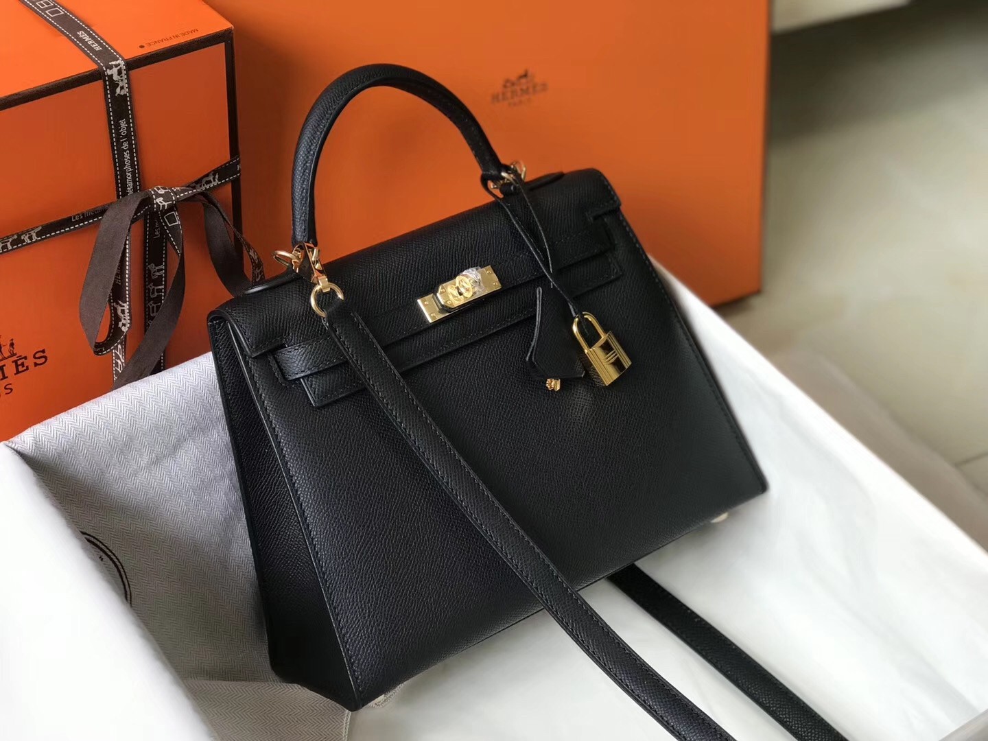 Hermes Kelly 25cm Sellier Bag In Black Epsom Leather
