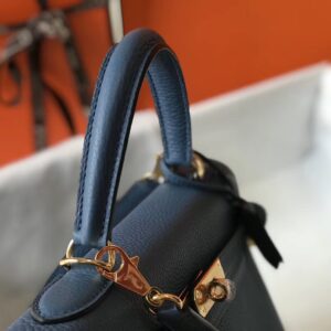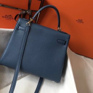 Hermes Kelly 28cm Retourne Bag In Blue Agate Clemence Leather