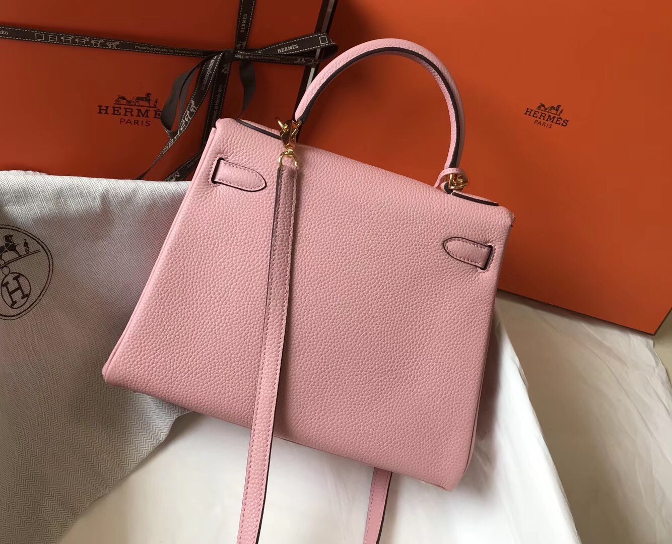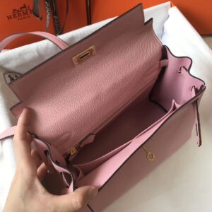Hermes Kelly 28cm Retourne Bag In Pink Clemence Leather