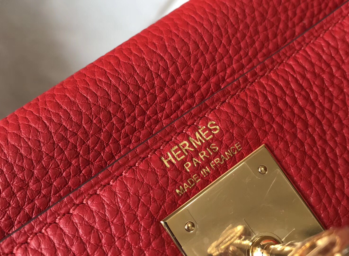 Hermes Kelly 28cm Retourne Bag In Red Clemence Leather
