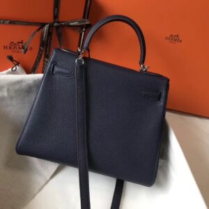 Hermes Kelly 32cm Retourne Bag In Navy Blue Clemence Leather