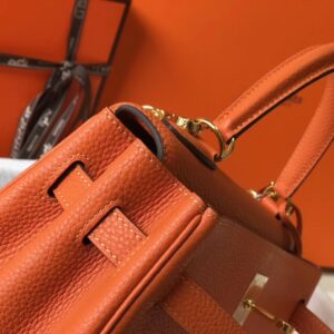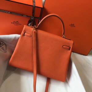 Hermes Kelly 32cm Retourne Bag In Orange Clemence Leather