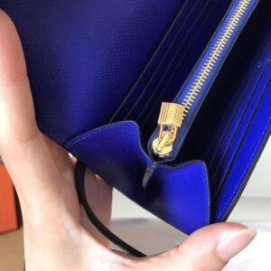 Hermes Kelly Classic Long Wallet In Blue Electric Epsom Leather