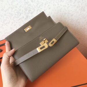 Hermes Kelly Classic Long Wallet In Taupe Epsom Leather