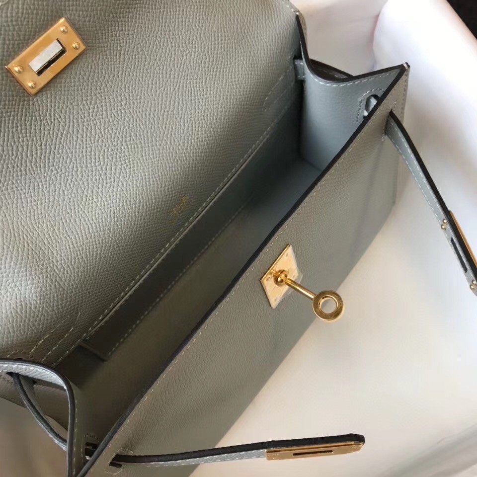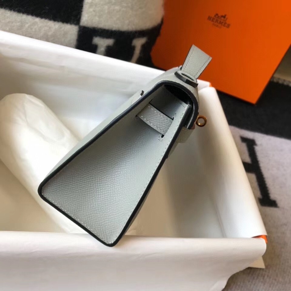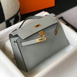 Hermes Kelly Pochette Bag In Blue Glacier Epsom Leather