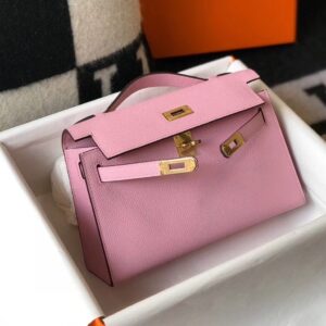 Hermes Kelly Pochette Bag In Mauve Sylvestre Epsom Leather