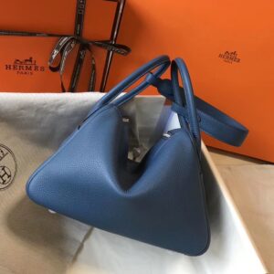 Hermes Lindy 26cm Bag In Blue Agate Clemence With PHW