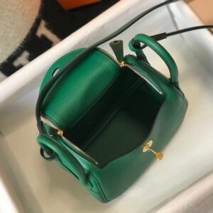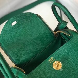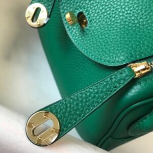 Hermes Lindy Mini Bag In Green Clemence Calfskin