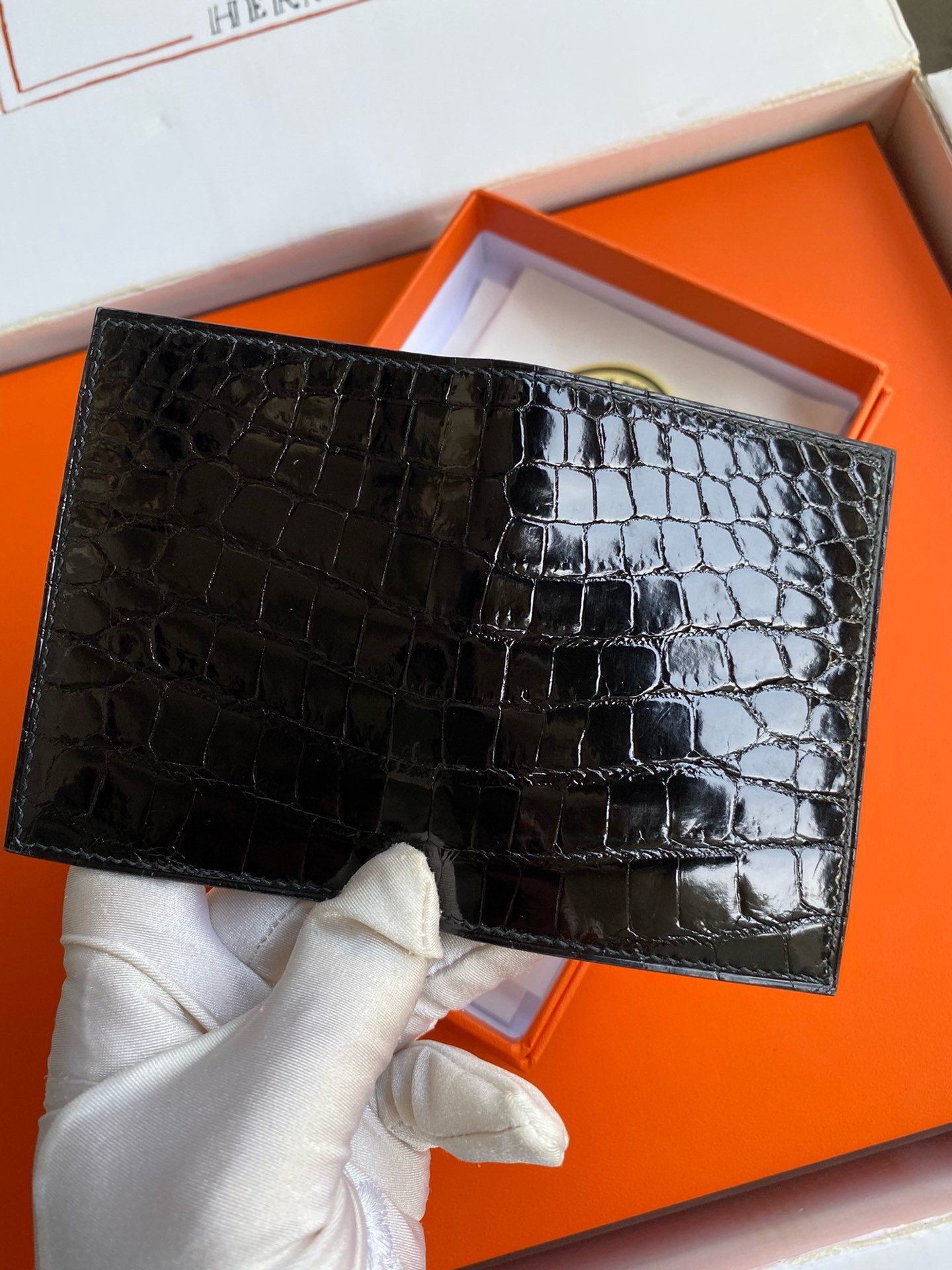 Hermes MC² Euclide Card Holder in Black Shiny Alligator Leather