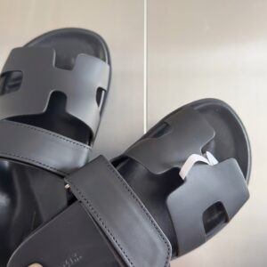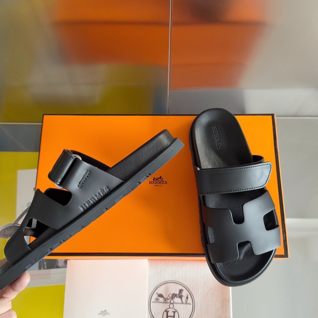 Hermes Men's Chypre Sandals in Black Calfskin