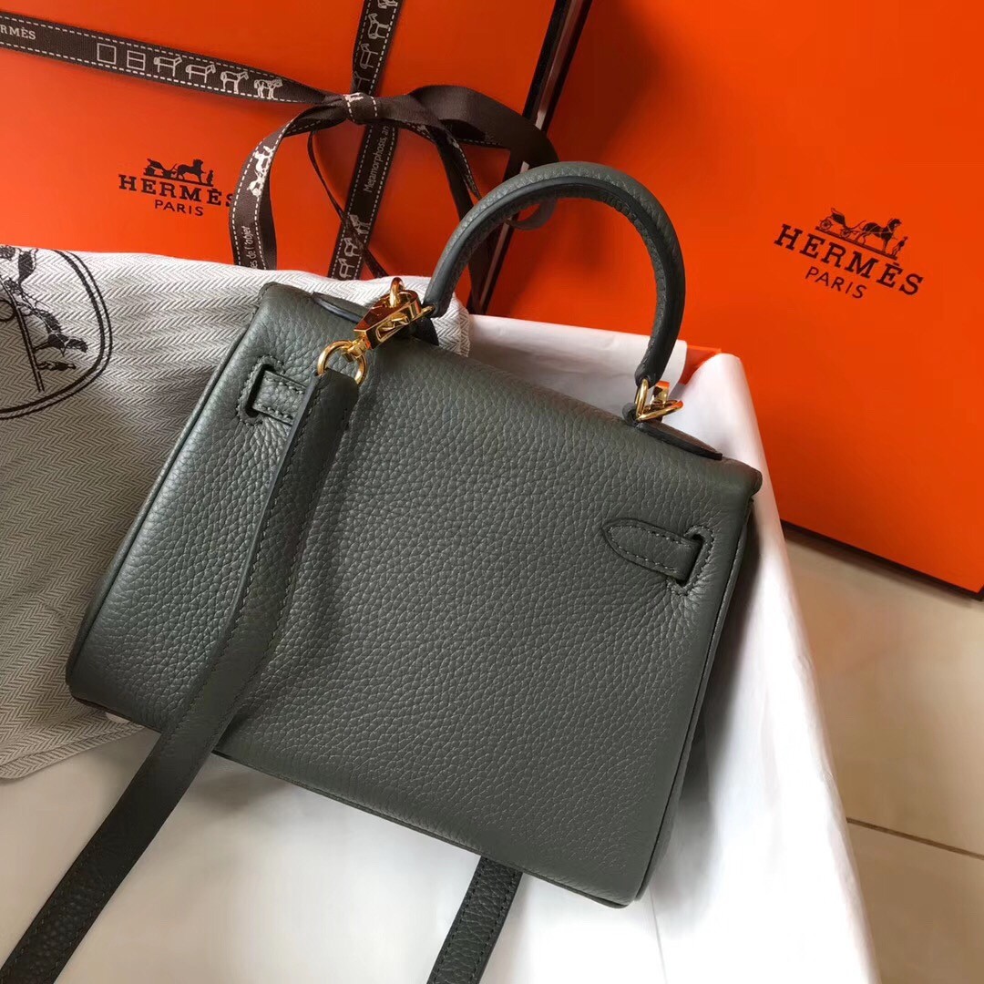 Hermes Mini Kelly 20cm Bag In Canopee Clemence Leather