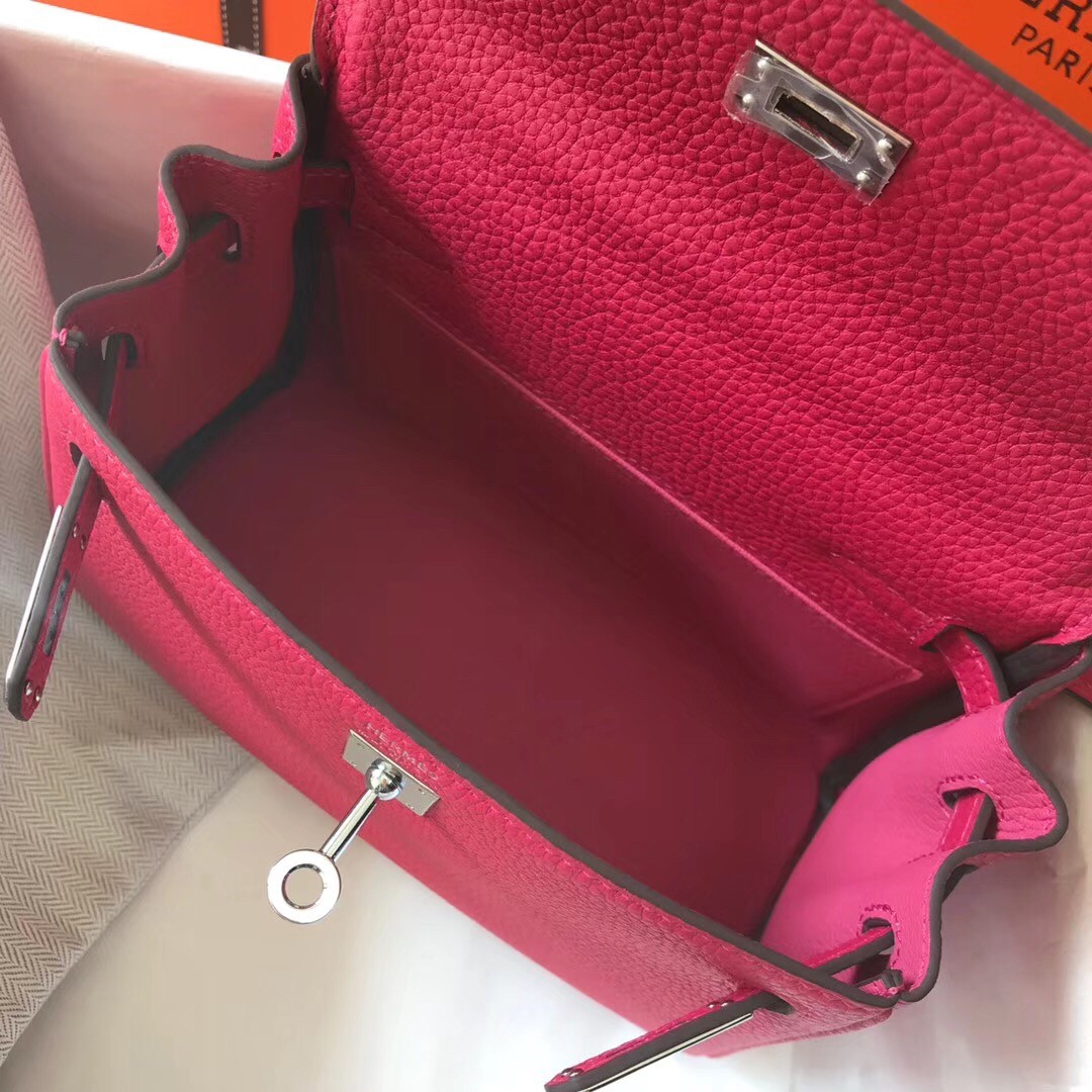 Hermes Mini Kelly 20cm Bag In Rose Red Clemence Leather