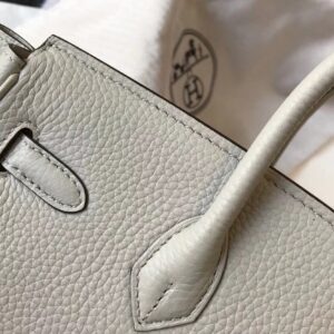 Hermes Pearl Grey Clemence Birkin 30cm Bag GHW
