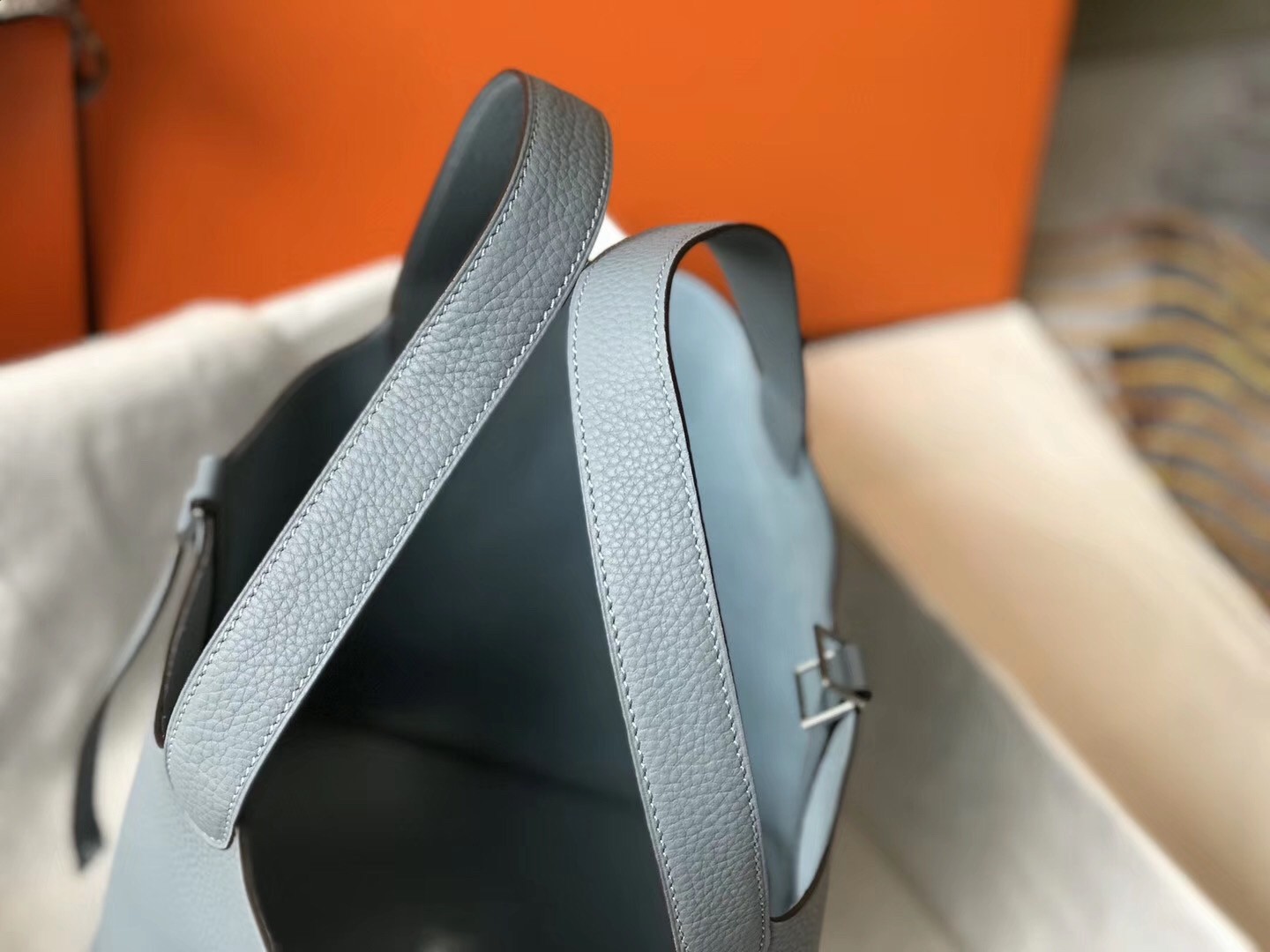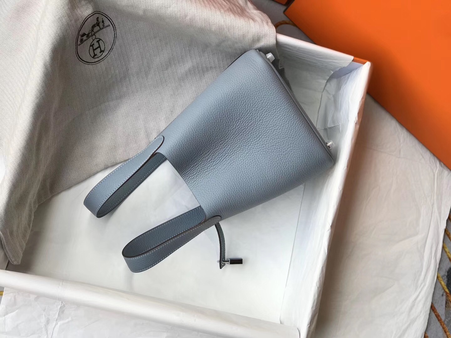Hermes Picotin Lock 18 Bag In Blue Lin Clemence Leather