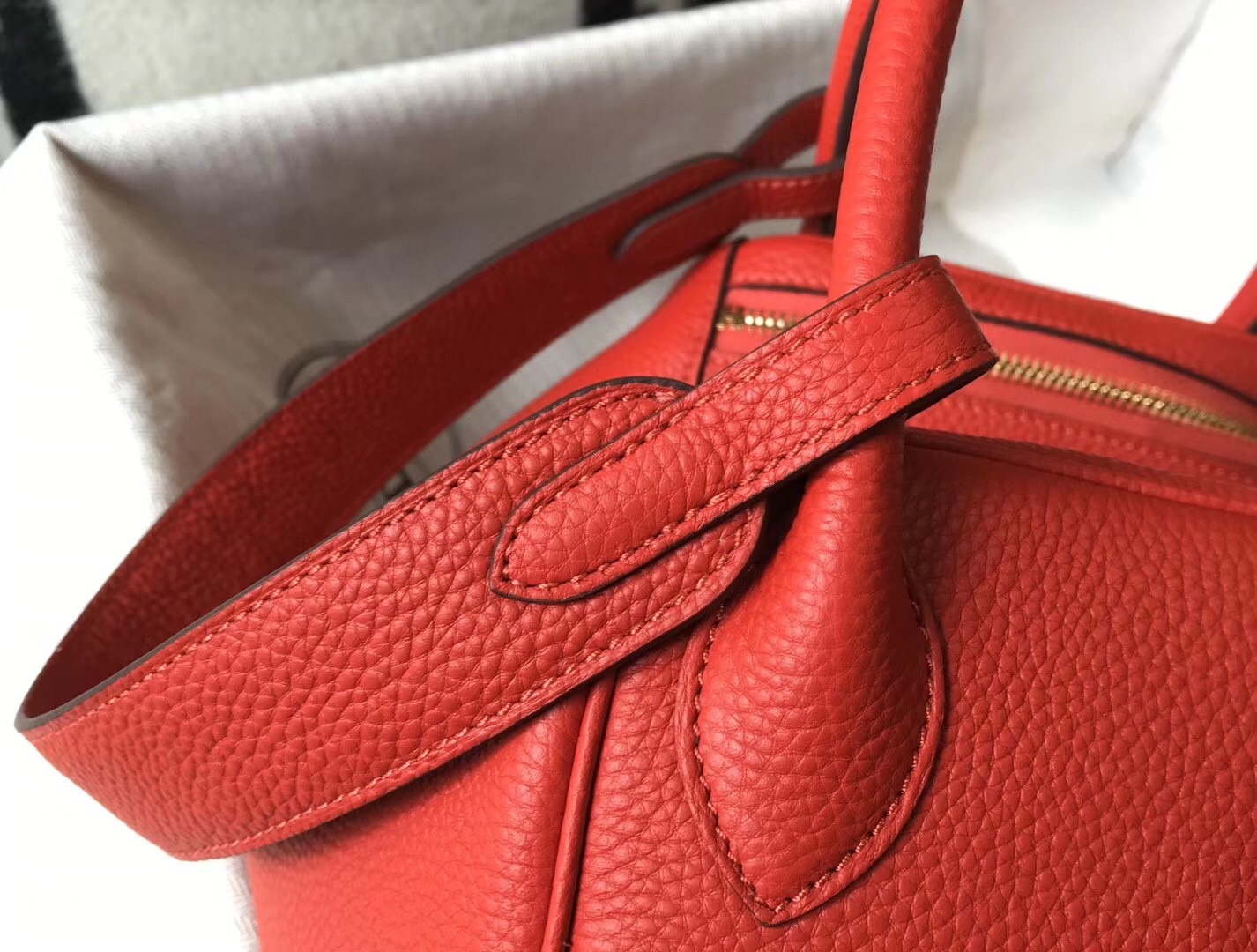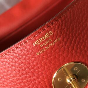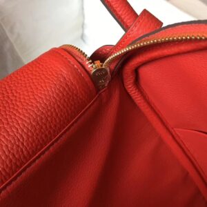 Hermes Red Clemence Lindy 30cm Bag with GHW