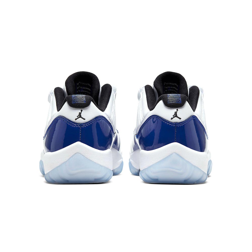 The Air Jordan 11 Low “Concord Sketch” is a Summer 2020 of the classic low-top silhouette. Fitted in women’s sizing, this shoe is part of Jordan Brand’s lineup of desirable Jordan 11 Lows. This colorway is inspired by an original sketch of the Jordan 11 by Tinker Hatfield. The upper features a white leather construction that appears on the mid-panel, collar, and heel. A contrasting Concord purple patent leather mudguard spans the entire upper and offers a heavy dose of nostalgia with its distinct styling. A white midsole and semi-translucent icy blue outsole complete the look of this appealing design.
