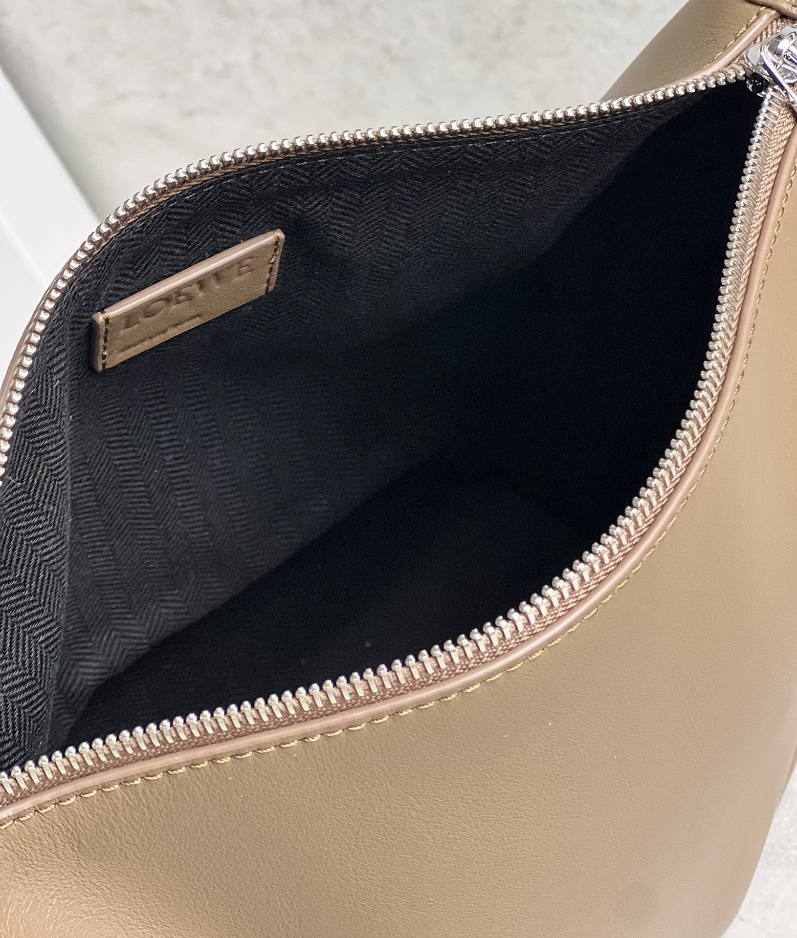 – Zip closure with calfskin zip pull