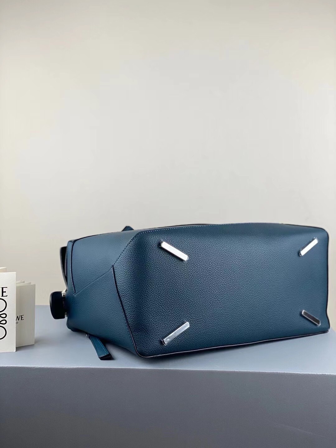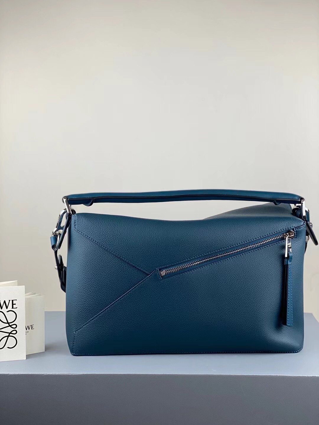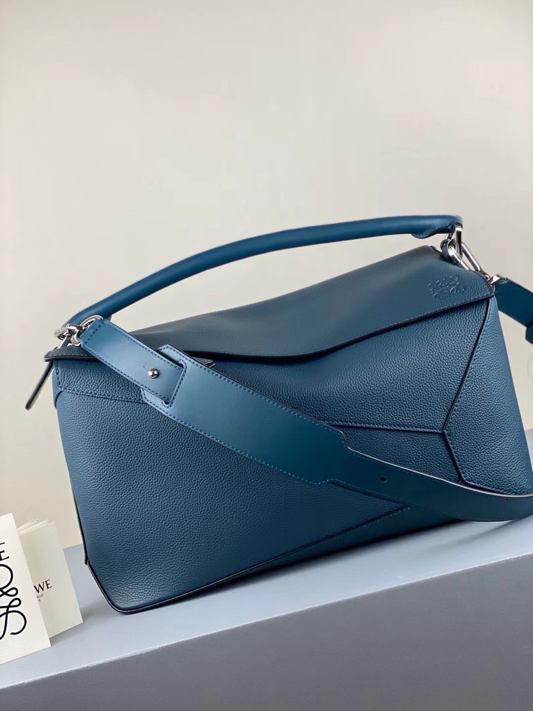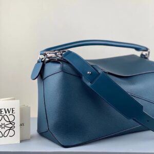 Loewe Large Puzzle Bag In Blue Grained Leather